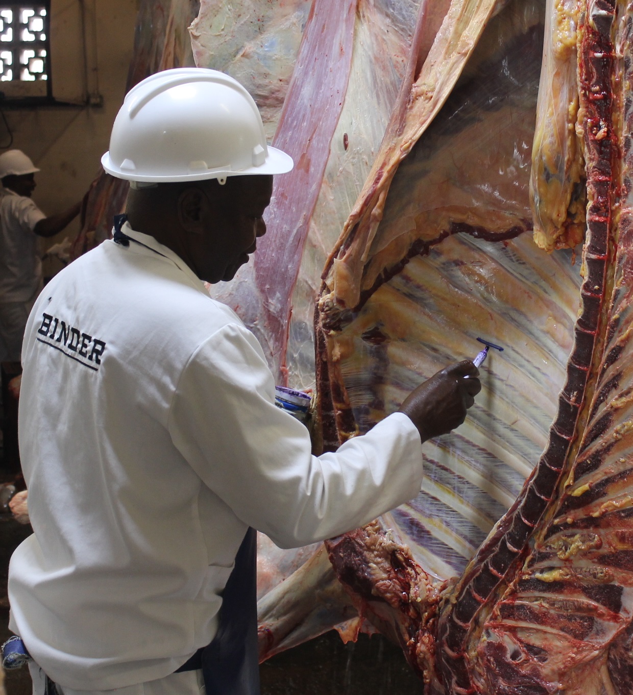 On arrival, please present your Police Clearance Certificate and Vet Movement Permit documents to the Receiving Clerk on Duty. Your cattle will be placed into the slaughter queue, we operate on a “FIRST COME, FIRST SERVED” basis. After slaughter your meat and offal will be tagged and placed in the cold room ready for you to collect or sell. If you require assistance with sales or transport, please speak to BINDER ABATTOIR employees at DISPATCH.